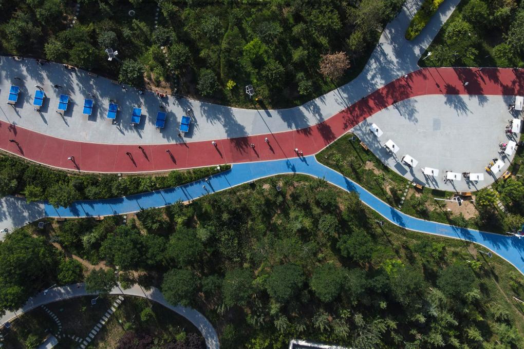 2025年7月7日,市民在平凉市崆峒区中心城区的平凉城市活力公园休闲健身(无人机照片)。