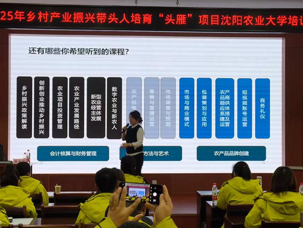沈阳农业大学党委副书记、副校长李斌是农产品加工课程的授课老师。他告诉记者,本次“头雁”培育项目共分种植、养殖、园艺、农产品加工、营销管理、乡村旅游6个专业方向,除了课堂理论教学,学员还会前往23个实践基地,走进田间地头实地学习。