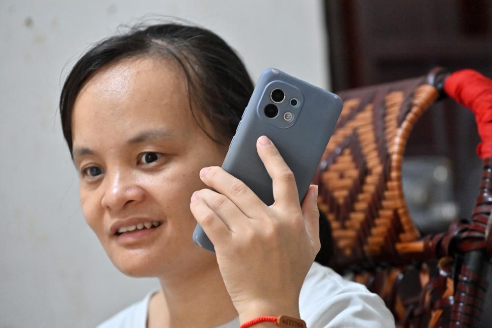 没想到,不幸再次降临到她的头上。2018年4月,正在广东打工的她,不幸患上双眼视网膜血管瘤等疾病,最后双目失明。那时,蓝野针已是两个孩子的妈妈,一个两岁半,一个五岁半,“眼前的生活就像我看到的世界一样黑暗,找不到出路。”蓝野针说。