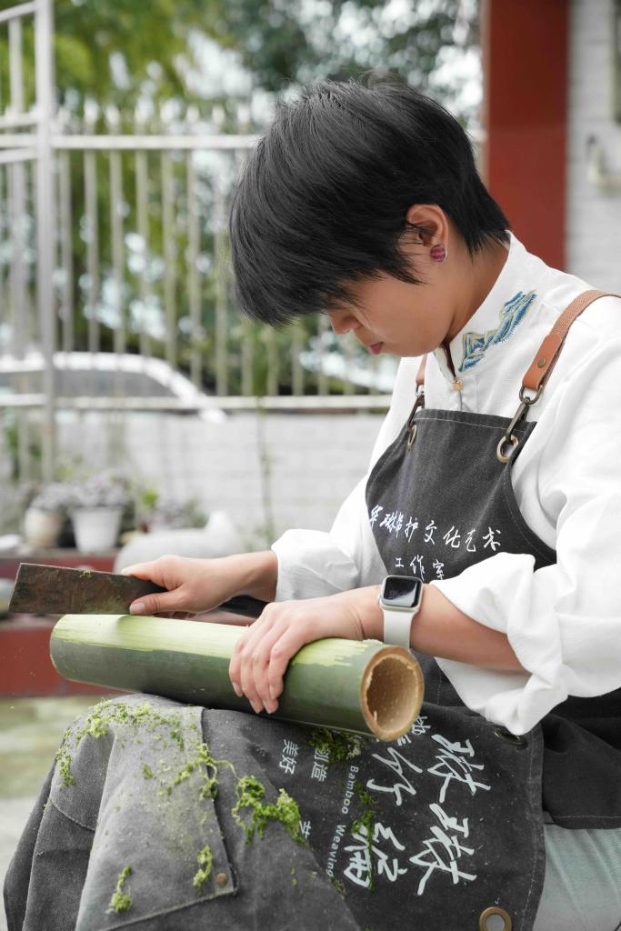 在竹林和院坝,忘却烦恼的刘罗琳享受匠人角色,找到与自然、与自己对话的感觉:“当手指在编织,心就在说话。”