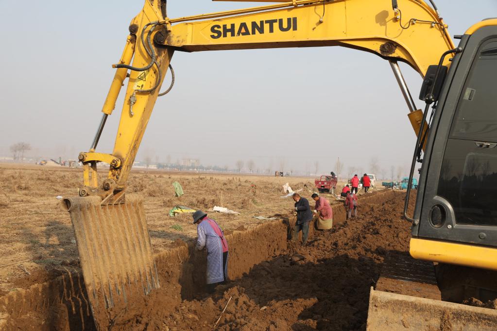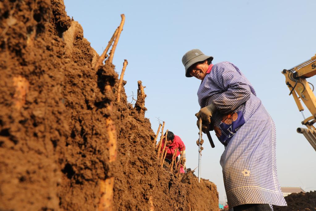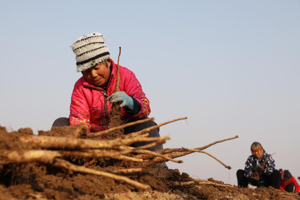 12月11日,河南省焦作市温县番田镇白沟作村农民在山药种植基地收获铁棍山药。