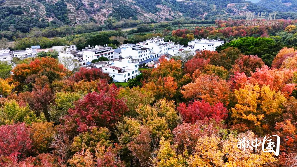 当十二月的风拂过霞浦,杨家溪的色彩已酝酿得饱满绚丽,从空中俯瞰,红枫、黄樟与翠柏交织如打翻的调色盘,层层点染山谷。白墙灰瓦的村落嵌于彩林间,仿佛自水墨中氤氲出一抹暖意。