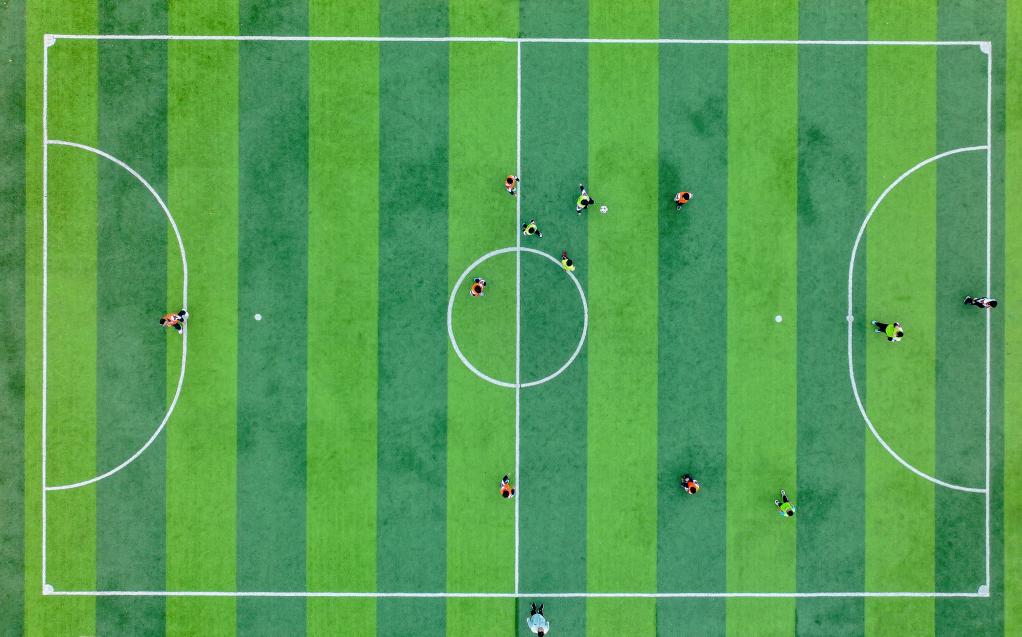 2025年12月18日,福建省龙岩市新罗区小池电力希望小学的学生在课后踢足球(无人机照片)。