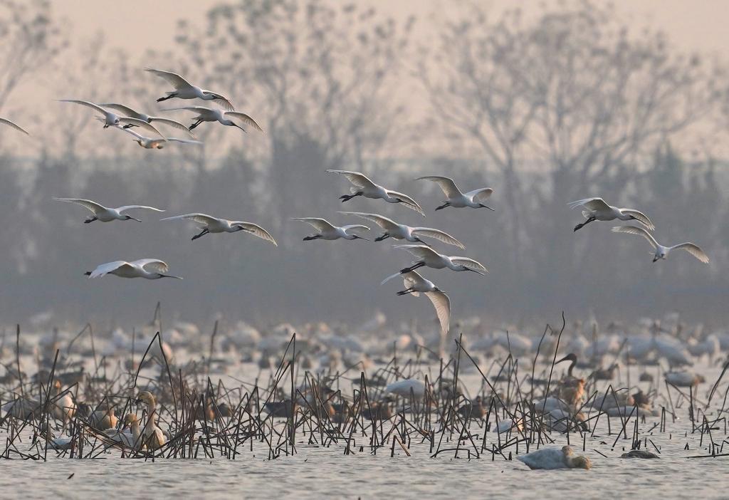 南昌:五星白鹤保护小区迎来候鸟栖息高峰