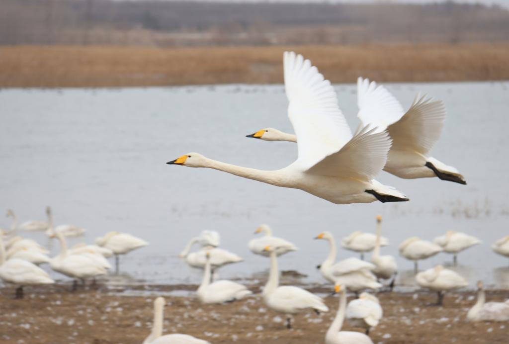 进入冬季,大批白天鹅来到河南省三门峡市黄河湿地栖息越冬。近年来,随着当地不断加强黄河沿岸湿地生态保护工作,白天鹅的数量逐年增加。目前,三门峡黄河岸边40余万亩浅滩湿地已迎来万余只白天鹅。