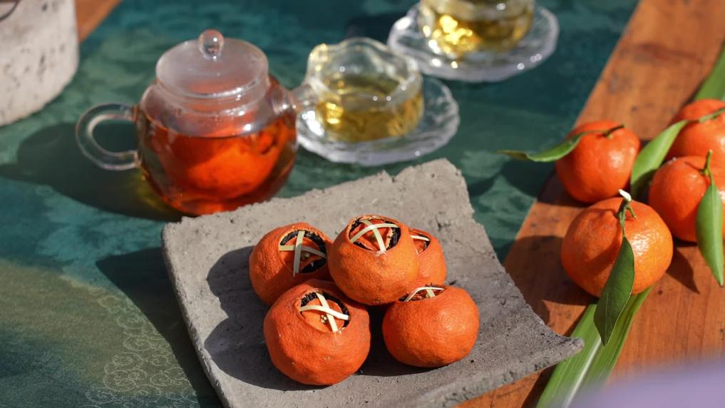 桔红茶的制作,需先轻轻掀开桔皮顶端,细心取出内瓤,随后填入精制的祁门红茶,最后以竹条精心封口。整个工艺流程完成后,一颗颗形似红色灯笼的桔红茶便呈现在眼前。桔红茶在完整保留小红桔原始外形的同时,使桔子的果香与红茶的醇厚彼此激发,相得益彰。