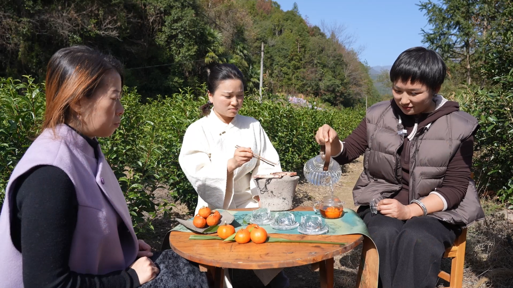 冬日时节,在安徽省黄山市祁门县新安镇龙源村,当地村民将小红桔和祁门红茶融合在一起,制作出果味茶饮“桔红茶”。