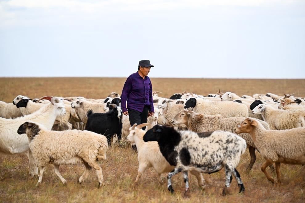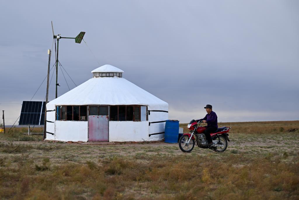 内蒙古四子王旗广袤的草原上,北风呼啸,牧草已经变黄。一顶白色的蒙古包里钻出一位牧民,他熟练地跨上自己的摩托车,准备到远处查看羊群。