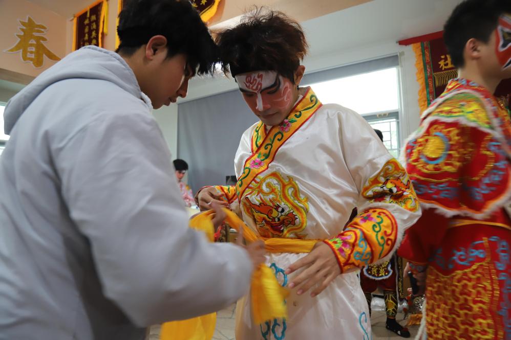 化妆间隙,女队员李甜慧向我讲述了与英歌舞结缘的故事:小时候只觉得英歌舞热闹好看,直到自己也成为队员,才发现其中门道丰富,光是服装就十分讲究,手中两根木棒更能变化出无穷花样。作为英歌舞队中的一员,她从最初的跟舞逐步成长为领舞,如今还能协助教练创新改编动作。“现在,我不仅想跳好英歌舞,更希望把它传承下去,让更多人了解、学习这门非遗艺术”,李甜慧自豪地说。