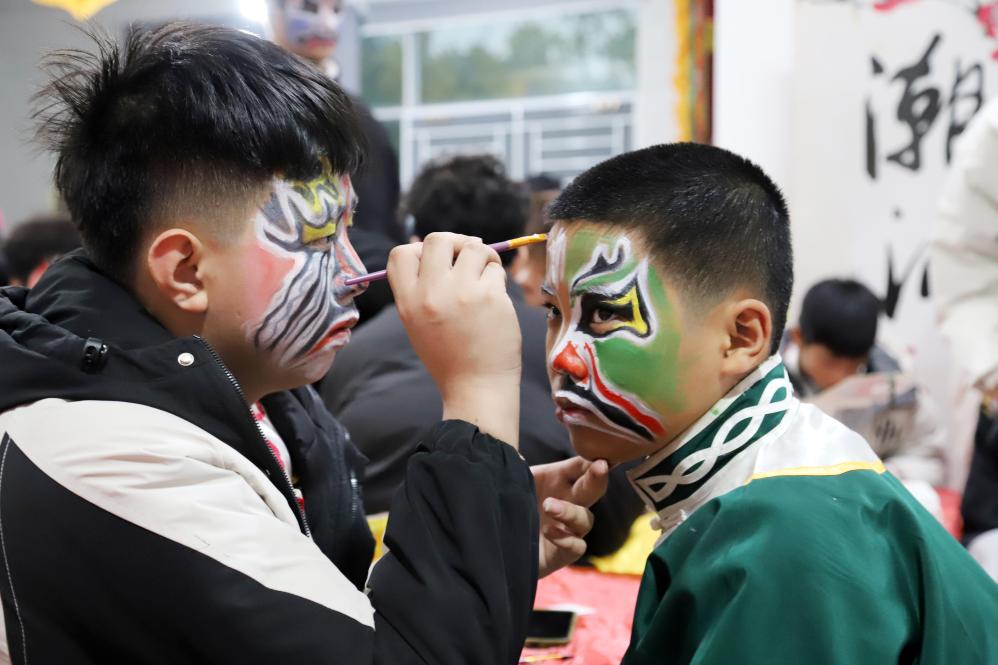 蛇年正月初一,晨曦微露。我抵达汕头市潮阳区文光桃园英歌训练基地时,这里已一片热火朝天。队员们正相互勾画脸谱、整理服饰。一张张青春脸庞上,既有对新年的期盼,更满含对英歌舞的执着。他们,即将以一场桃园英歌舞为新年启幕。
