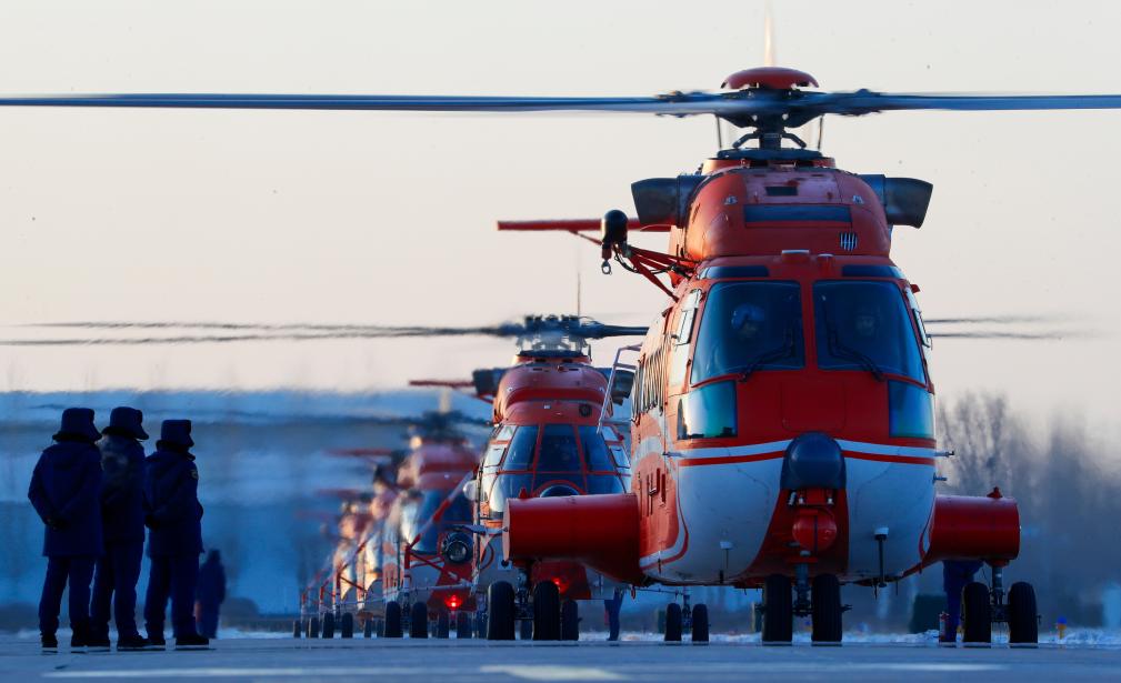 1月29日,在空投实战化训练现场,救援直升机增速飞向空投预定地点。