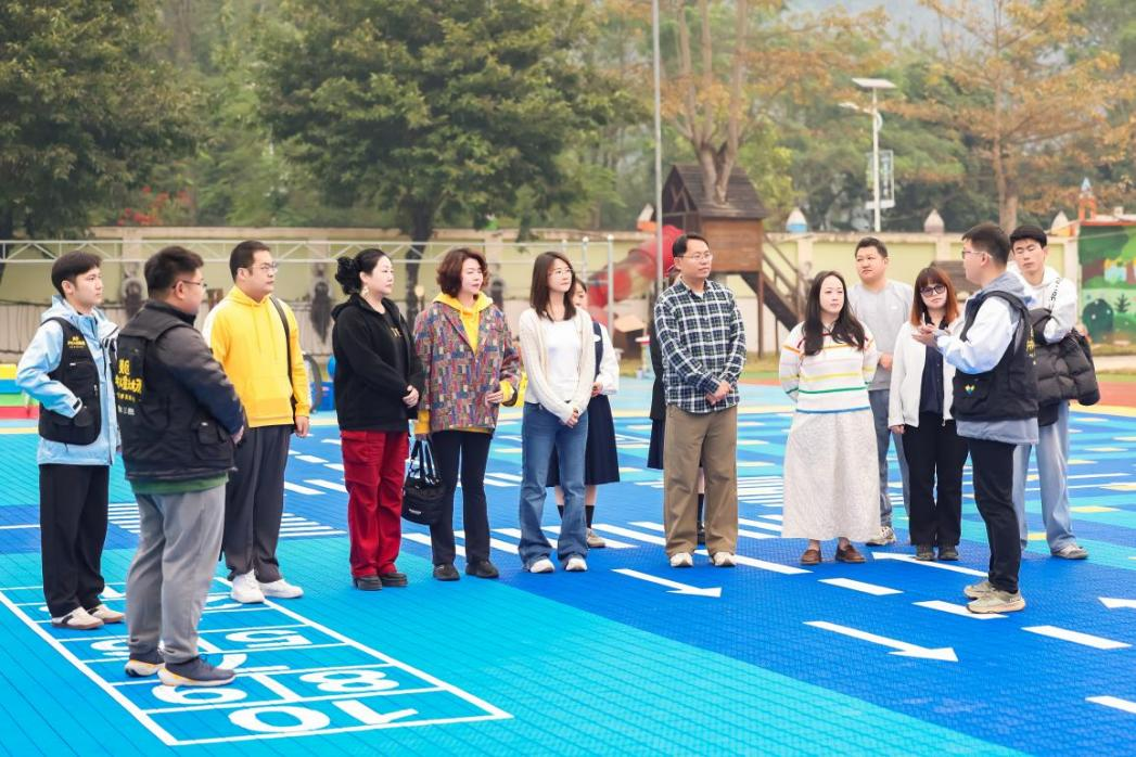 图为奈尔宝、美团与壹基金代表探访乡村儿童操场。