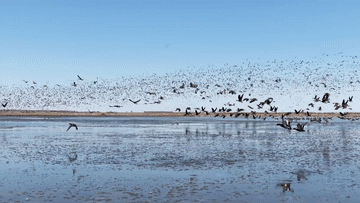 每年春秋两季,数百万只候鸟经过辽宁并在此停歇栖息。在万羽归栖之间,一幅美丽的湿地生态画卷正徐徐铺展。