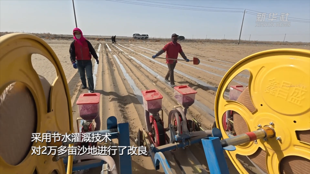 且末县位于塔克拉玛干沙漠东南缘,三面被沙漠包围。2023年,当地引进农业种植企业,统筹田、林、水、路、渠建设,采用节水灌溉技术,对2万多亩沙地进行了改良。