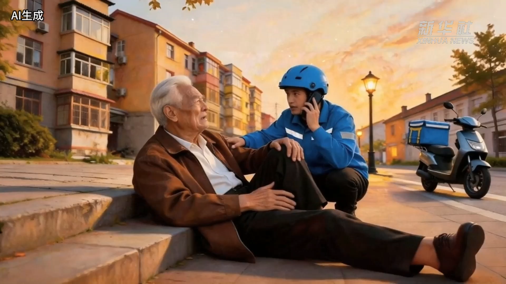 遇老人摔倒,外卖小哥立即停车救助