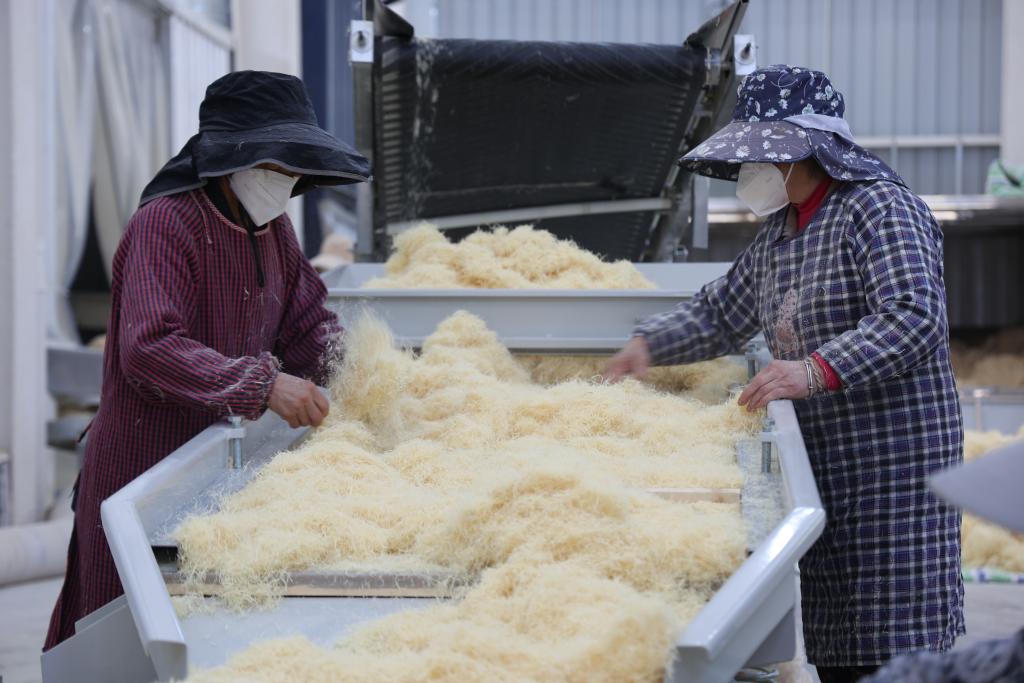 2024年,陈浪飞团队返乡来到江安县留耕镇创业,和三块村合资成立了竹本绒公司,瞄准宠物垫料赛道。“竹木加工厂的废料再加工处理后,做成小宠专用的抑菌竹绒垫料,具备高效抑菌、吸湿除臭以及可降解等优点。”陈浪飞说,2025年,产品在电商平台上跃居“小宠垫料”销量榜前列。