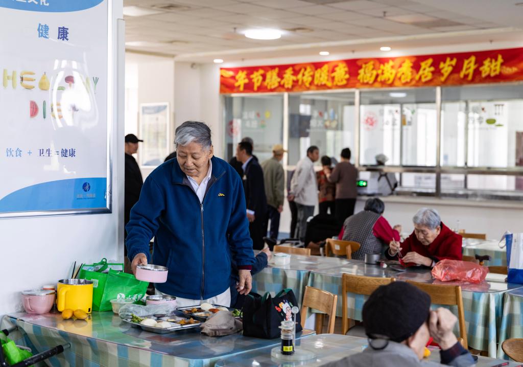 4月23日,老人在天津市滨海新区第一老年养护院就餐。