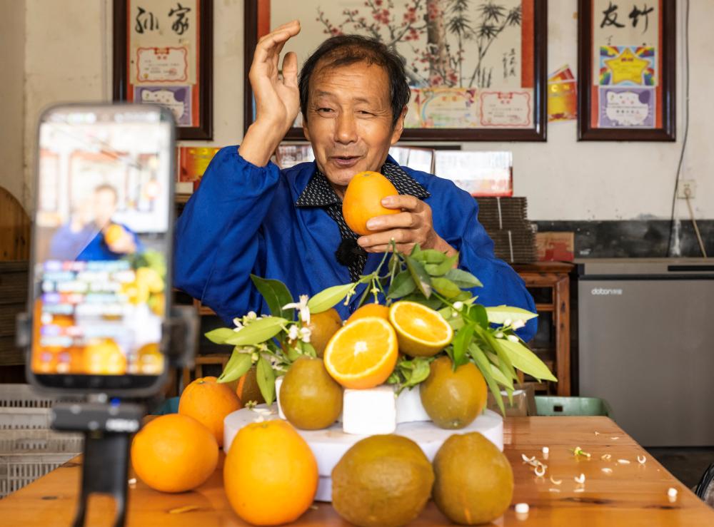 湖北秭归:七旬果农直播带橙出三峡-新华网
