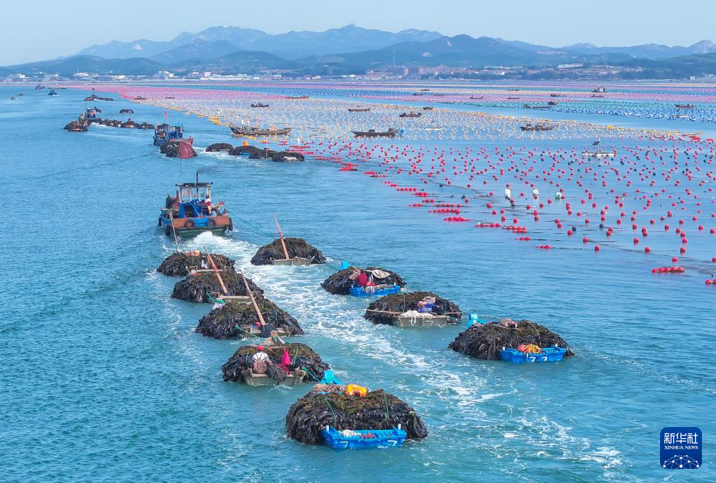 山东省荣成市是我国较大的海带产地,每年6月是海带收获最繁忙的时节。