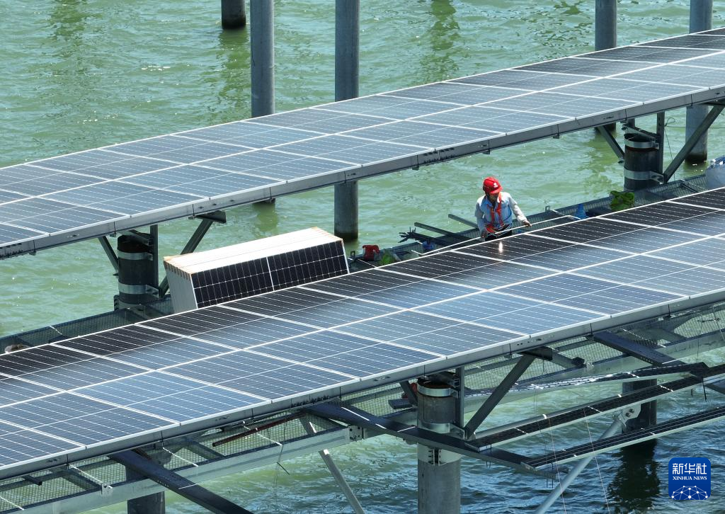 6月20日拍摄的三峡集团东山杏陈180MW海上光伏电站建设现场(无人机照片)。