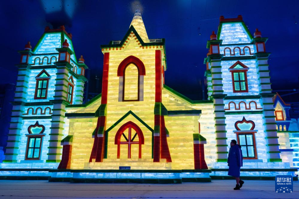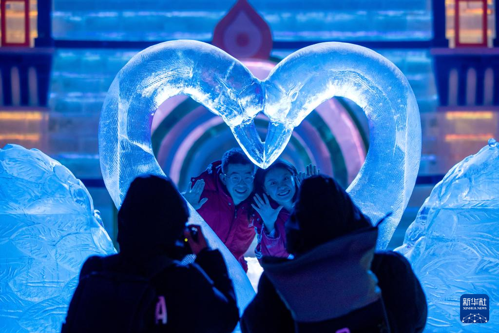 7月6日,市民游客在哈尔滨冰雪大世界园区内观看表演。