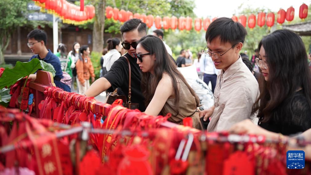 8月11日,人们在云南省腾冲市和顺古镇参观汉服婚礼表演。