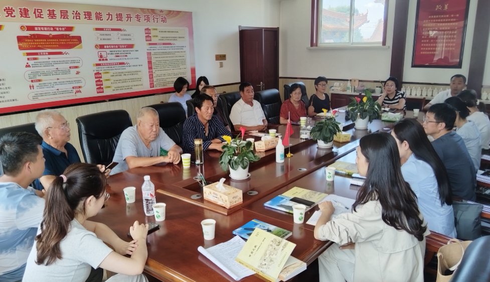 图为山西省忻州市原平市原平农民散曲社社员代表与文明中国行记者团成员座谈(8月7日)。新华网发(山西文明网 周昱丽 摄)