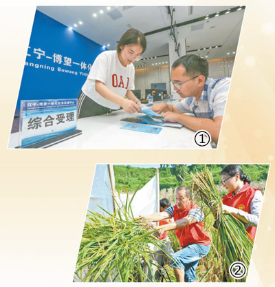 图①:安徽省马鞍山市博望区丹阳镇干部(左)在为办事群众答疑解惑。 王文生摄