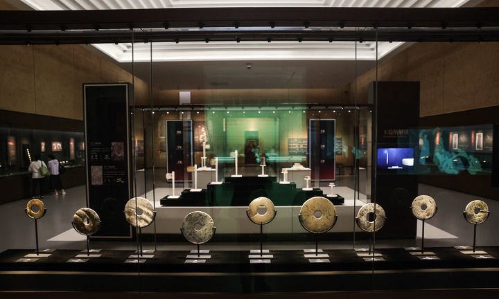 这是良渚博物院内展出的良渚遗址发掘出来的文物(2024年4月18日摄)。新华社记者 徐昱 摄
