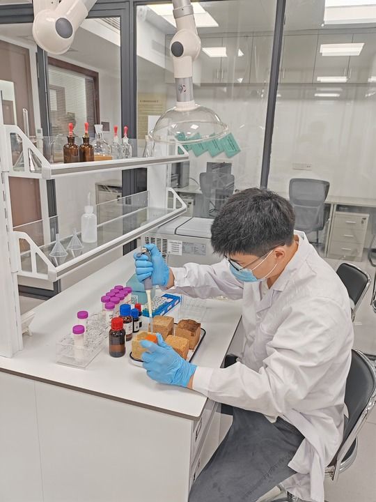 2024年7月8日,研究人员在杭州良渚古城遗址世界遗产监测管理中心的潮湿环境土遗址保护实验室进行试验。新华社记者 冯源 摄