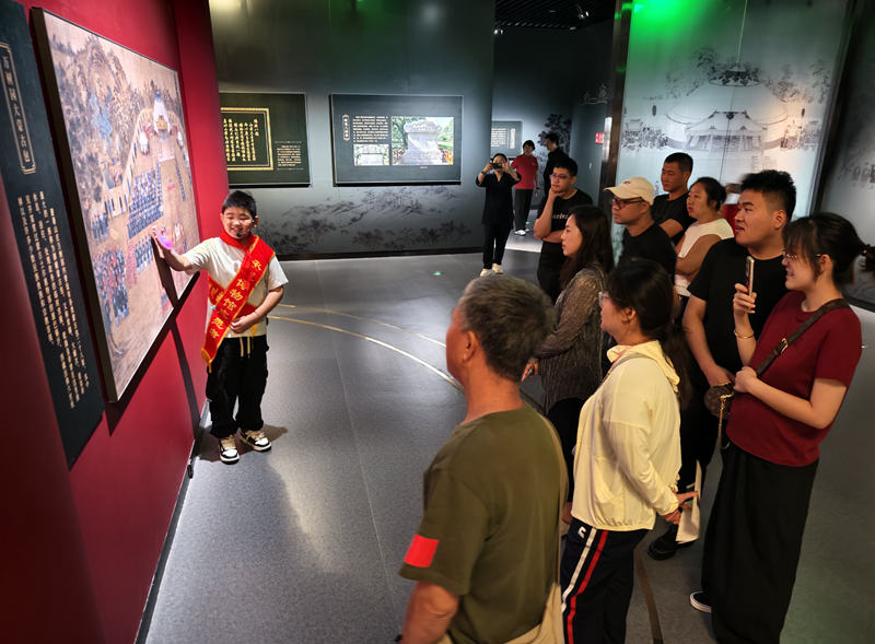 8月21日,河北省承德博物馆“小小讲解员”施坪伯正在向游客讲解文物故事。 新华网发(承德日报社记者 张雨樵 摄)pagebreak