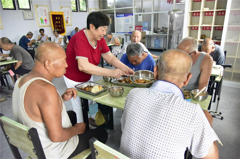 “自己父母不在身边,有这个机会能给村里的独居老人做做饭,也是想着尽尽孝道。”在“孝老食堂”做义工的阚亚丽一边为老人盛饭一边告诉记者。