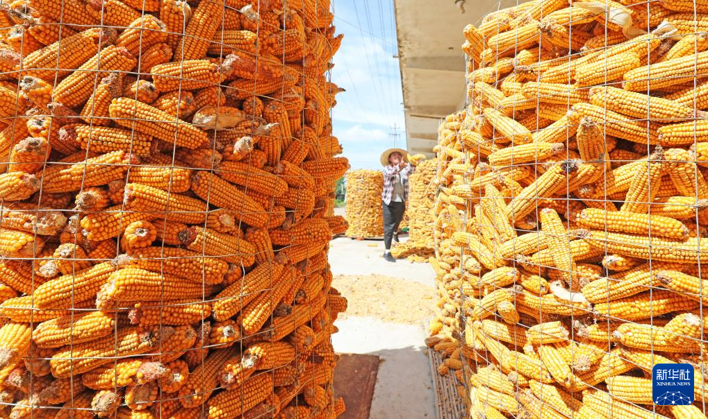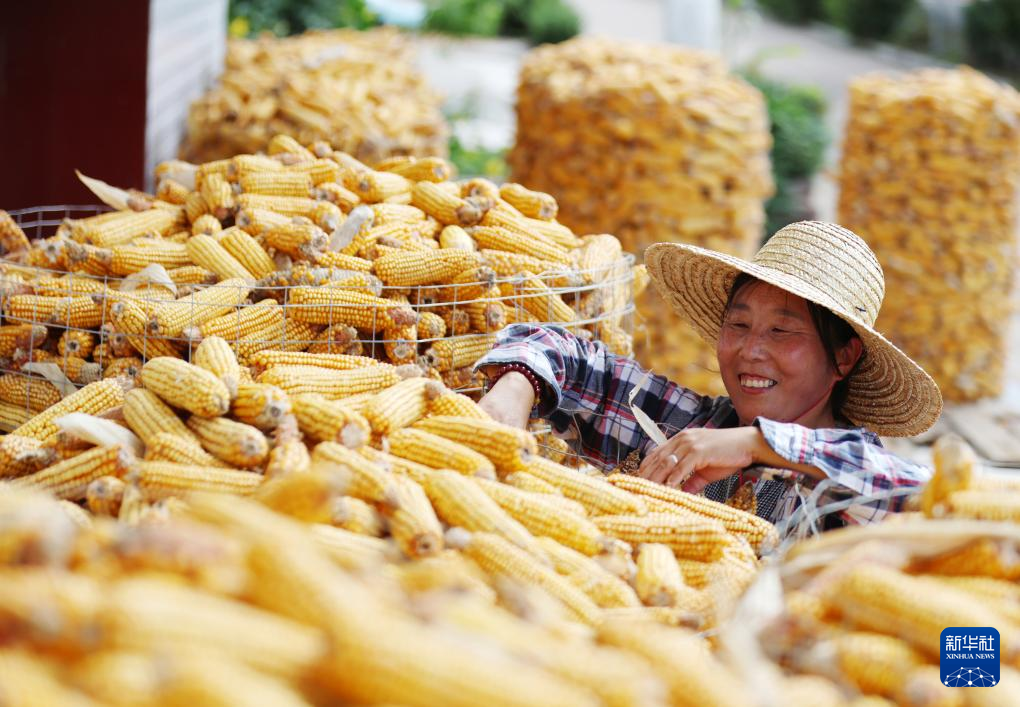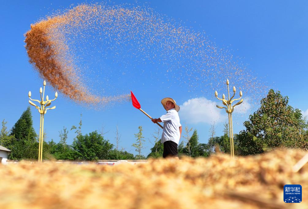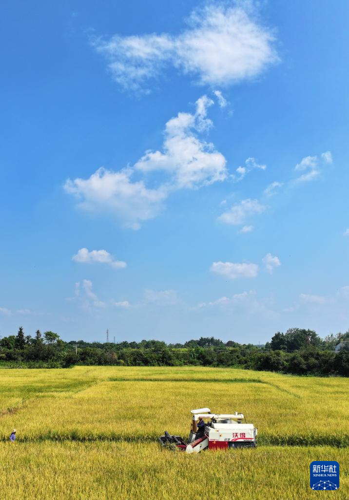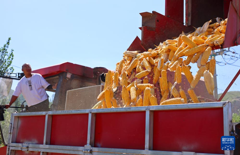 金秋时节,瓜果飘香、田野金黄,农民抢抓晴好天气,收获劳动果实。