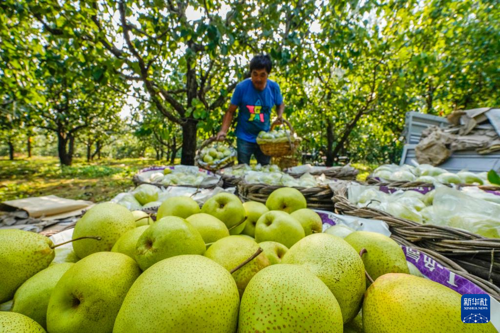 9月18日,河北省遵化市铁厂镇农民在果园采摘甜梨。
