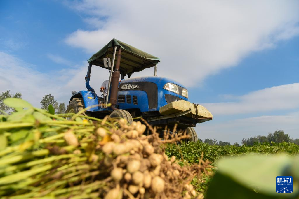 9月17日,河南省驻马店市正阳县彭桥乡大刘村村民在收割花生。