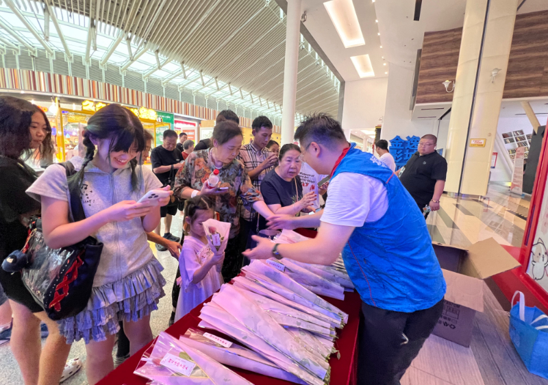 2024年8月9日,北京市大兴区文明办、大兴区商务局联合西红门镇、天宫院街道等属地在北京荟聚中心、龙湖大兴天街、绿地缤纷城、大悦春风里等商场同步开展“反对浪费 崇尚节约”主题宣传活动。(北京市大兴区文明办供图)