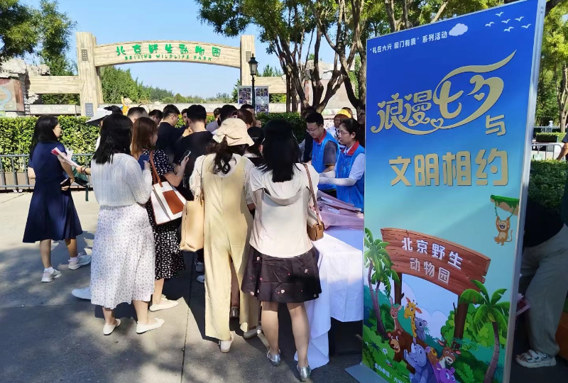 2024年8月8日,北京市大兴区开展“礼在大兴 国门有我”——浪漫七夕与文明相约系列活动,大兴区文明办联合榆垡镇在北京野生动物园开展文明旅游宣传活动。(北京市大兴区文明办供图)