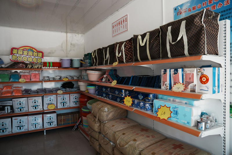 马鞍山村爱心超市积分兑换区 新华网发(赤峰市融媒体中心记者 孙雁南 摄)