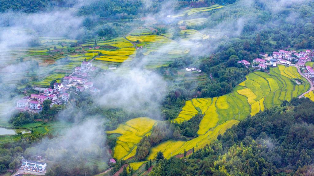 2024年8月19日在安徽省宣城市旌德县兴隆镇三山村拍摄的“云上梯田”。新华社记者 曹力 摄