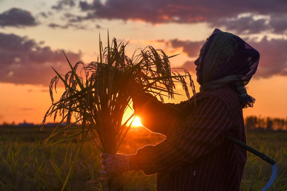 2023年9月12日,吉林省吉林市永吉县万昌镇花家村的农民在收割水稻。新华社记者 张楠 摄