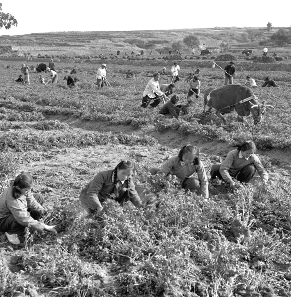 1959年,山东蓬莱城关人民公社团结生产大队的社员们正在抢收花生。新华社记者 李成美 摄