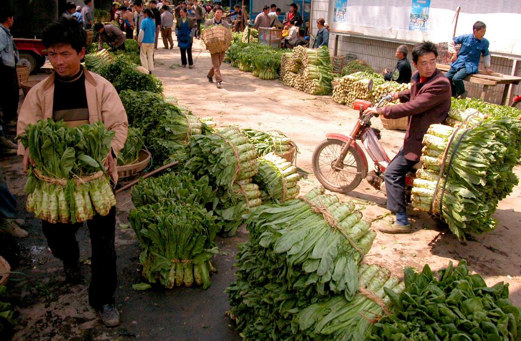 2004年4月8日,农民们将蔬菜运到贵州省贵阳市乌当区永乐乡农贸市场出售。 新华社记者 杨楹 摄