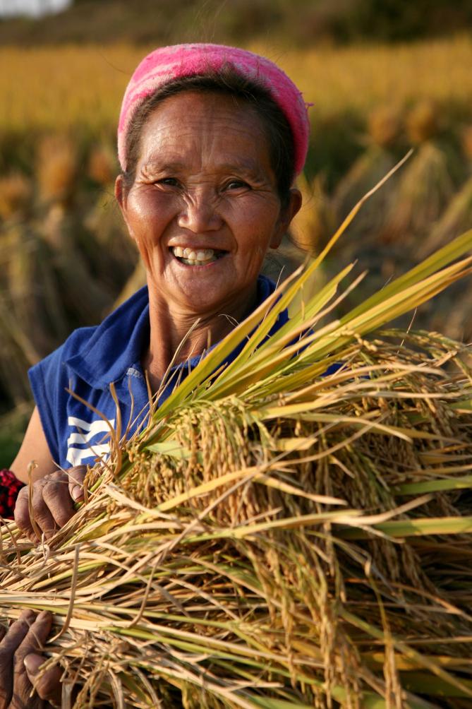 2007年9月23日,贵州省贵阳市郊花溪区,一名农民的笑容中洋溢着丰收的喜悦。新华社发