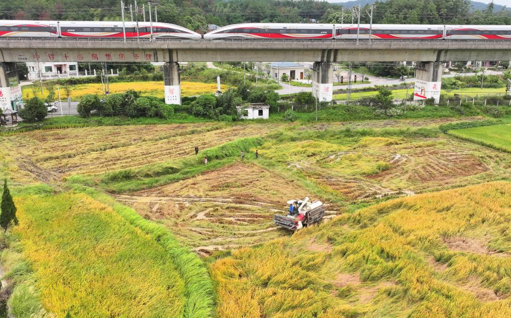 9月22日,农机手驾驶收割机在湖北武汉江夏区法泗街道大路村收割制种水稻。
