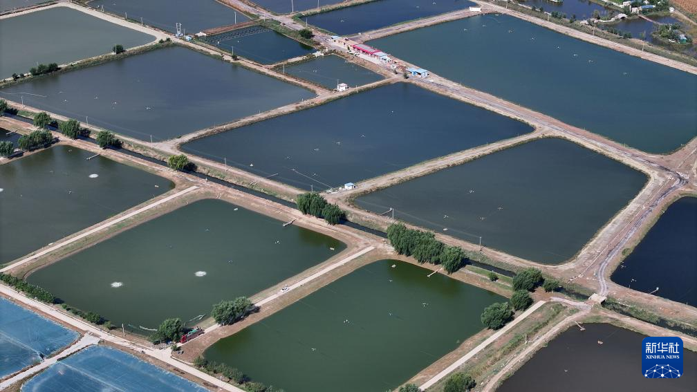 这是9月20日拍摄的宁夏银川市贺兰县立岗镇兰丰村的晶诚水产养殖基地(无人机照片)。昔日的盐碱地变为水产养殖的“聚宝盆”。