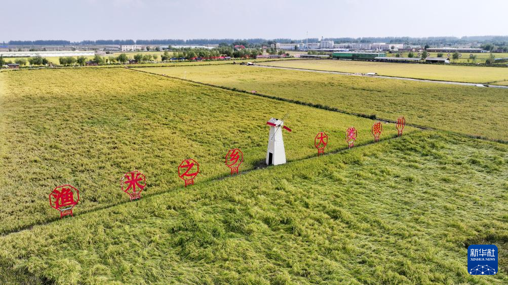 这是9月19日拍摄的位于宁夏银川市贺兰县常信乡四十里店村的稻渔空间乡村生态观光园。