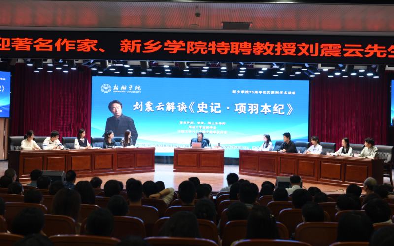 10月8日上午,作为新乡学院特聘教授,当代著名作家刘震云在新乡学院文化艺术中心开展了一场解读《史记·项羽本纪》的课堂教学活动。