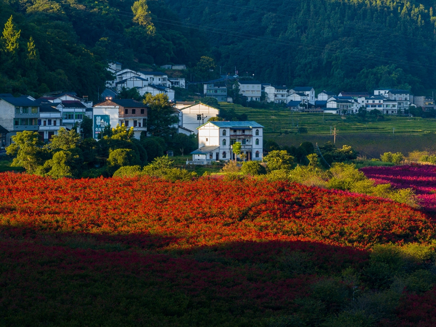 綦江区吹角村的紫薇花开时,粉红的,深红的,一大片一大片,装点着村庄,美化着乡村(资料图)。新华网发(重庆市綦江区融媒体中心 吴先勇 摄)pagebreak