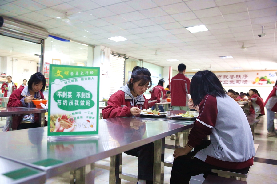 綦江区南州中学食堂杜绝浪费的标语随处可见(资料图)。新华网发(重庆市綦江区融媒体中心 张梦寒 摄)pagebreak