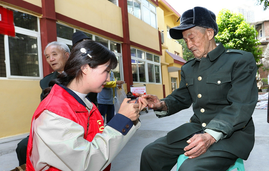 社区党员志愿者为老人们修剪指甲(资料图)。新华网发(重庆市綦江区融媒体中心 杨松 摄)pagebreak